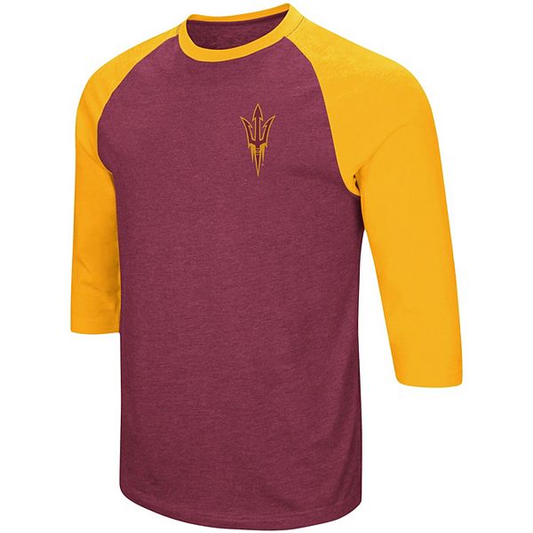 Men S Colosseum Maroon Gold Arizona State Sun Devils Raglan 3 4 Sleeve T Shirt